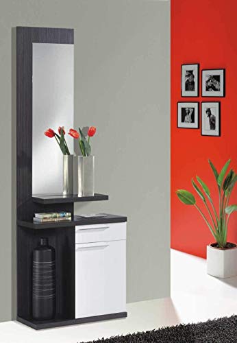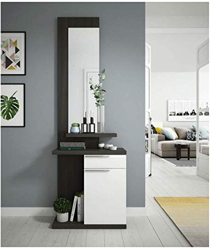 13Casa – Toledo A5 – Mobile ingresso con specchio incluso, 61x29x186 h cm, Grigio, Bianco. Mat: Melamina.