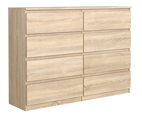 Caratteristiche tecniche: lunghezza: 140 cm, altezza: 101 cm, profondità: 39 cm, numero cassetti: 8 cassetti, spessore piano: 18 mm, materiale: pannello in laminato.