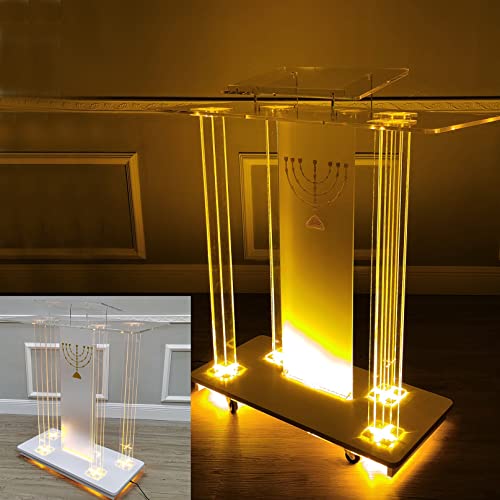 ◆◆ Supporto per podio trasparente – Design ad angolo ergonomico: podio rotante, podio a led, podio in acrilico, puoi appoggiare comodamente le mani su di esso durante qualsiasi presentazione. Questo podio mobile è un ottimo podio portatile per fiere, conferenze e altro ancora.