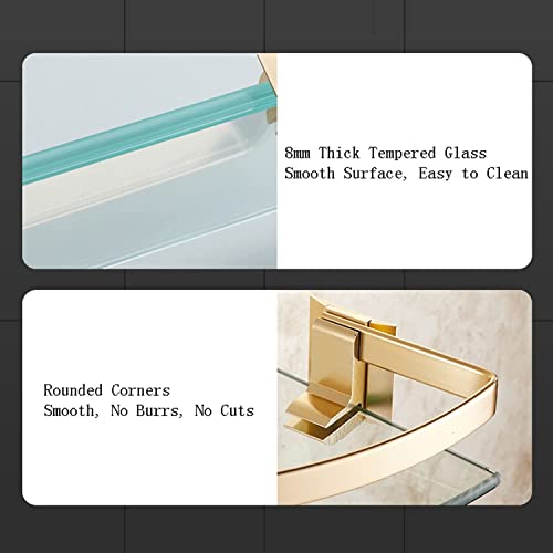 Ogni mensola del bagno è abbastanza robusta da sostenere il peso fino a circa 25 kg. 3 colori: nero, oro, argento; Dimensioni: 24 × 24 cm (9″ × 9″); Spessore del vetro: 8 mm (0,3 “)