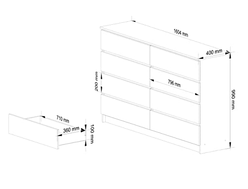 PRATICI CASSETTI – La cassettiera Akord è dotata di 8 cassetti che consentono un facile accesso a oggetti nascosti, vestiti o tessuti per la casa.