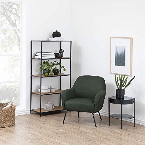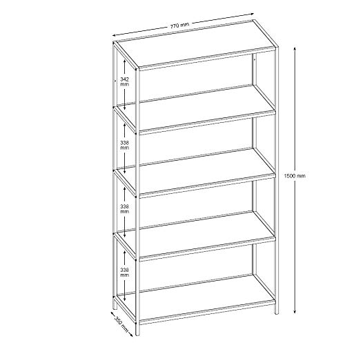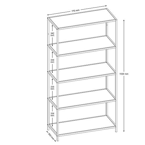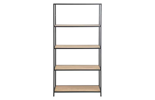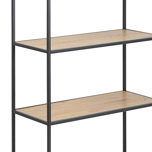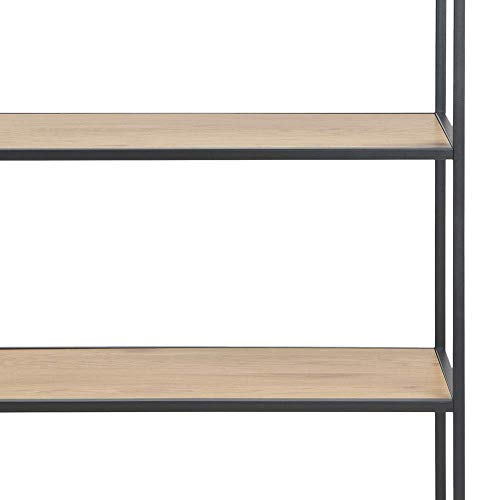 Struttura in metallo nero opaco verniciato a polvere con scaffali in legno; superficie effetto quercia silvestre facile da pulire