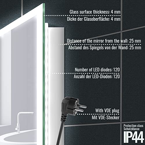 ⭐⭐⭐⭐⭐ MISURE: Questo specchio retroilluminato da bagno ha dimensioni di 120 x 60 cm; Una volta montato, è a soli 25 mm dalla parete