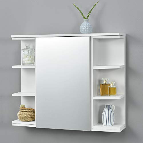 Armadietto da bagno con anta a specchio, ripiano regolabile in altezza all’interno dell’armadio, 3 ripiani a destra e a sinistra, facile da montare a parete, facile da pulire