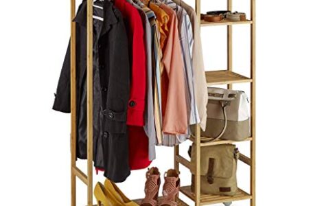 Relaxdays Stand Appendiabiti in bambù, Attaccapanni con 6 Ripiani, Design Aperto, HLP 136,5x92x30, Legno Naturale
