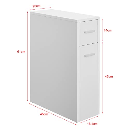 Questo mobile è una soluzione salvaspazio nel bagno. Con la sua forma stretta offre spazio di stoccaggio per sistemare carta igienica, detersivi e altri accessori da bagno.