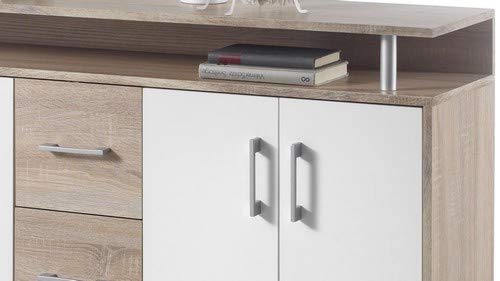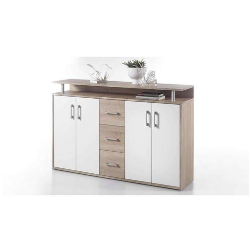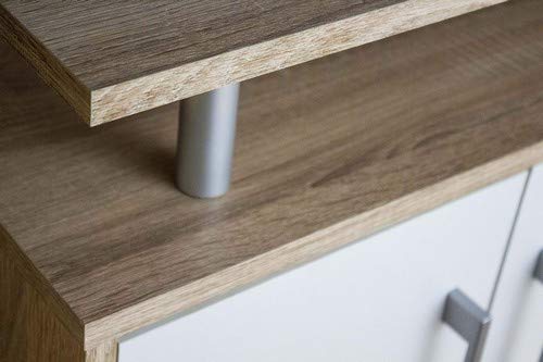 Tavola con frontali in bianco e inserti e corpo in finto rovere Sonoma.