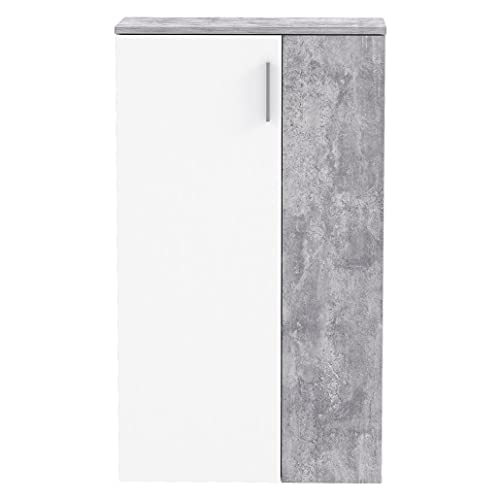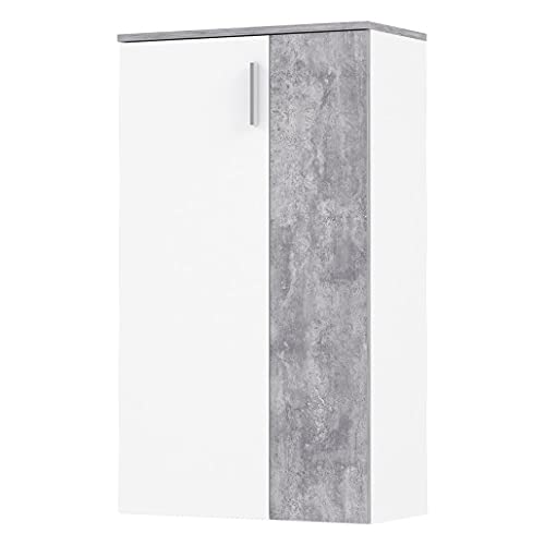 Materiale: legno truciolato, colore: cemento / bianco, quercia sonoma / bianco e tutto bianco. Maniglia: plastica di colore alluminio. Consiglio per il trattamento: evitare l’utilizzo di detergenti abrasivi, a base solvente o panni molto bagnati. Spedizione & montaggio: il prodotto viene consegnato smontato. Istruzioni e kit di montaggio compresi. Montaggio facile & veloce