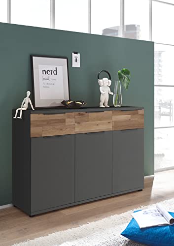 Comò / cassettiera moderna per il tuo soggiorno o la camera da letto. Grazie alle sue 3 ante e 3 cassetti offre molto spazio per varie decorazioni, libri o altri oggetti.