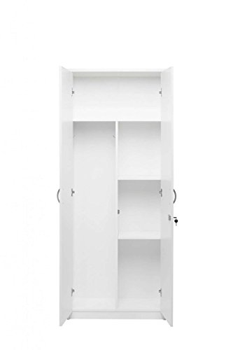 Materiale: Legno laminato di colore bianco, maniglie in plastica sintetica con ottica di alluminio, stabile e resistente. L’armadio superiore, come elemento aggiuntivo, può essere acquistato separatamenete (vedi articolo: B01ABOHA1Q)