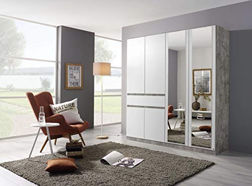 Armadio grande e molto spazioso, con 6 ante a battente, 1 cassetto e 2 ante specchiate con funzione “push-to-open”. Questa funzione consiste di aprire le ante specchiate con un semplice tocco. All’interno e allestito con bastone appendiabiti ed un ripiano superiore dietro le due ante specchiate, inoltre si trovano 3 ripiani dietro le 4 ante a battente. Il design è molto elegante e facile da abbinare ad altri mobili moderni in camera da letto.