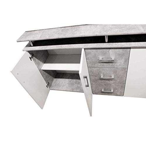 Skraut Home – Madia per Soggiorno o Sala da Pranzo – 86 x 120 x 40 cm – Buffet con 1 Anta + 3 Cassetti – Modello Wind – Legno Resistente – Finitura Cemento/Bianco