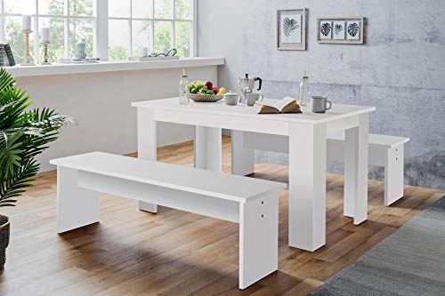 Ideale per cucine moderne o sale da pranzo, questo set con tavolo e 2 panche, dal design semplice e lineare, dà subito all’occhio per lo stile minimalista che offre. I cuscini NON sono compresi e possono essere acquistati separatamente (vedi Articolo: B014KKG4V4 ). Per un cuscino con schienale vedi articolo rif. B015W52VH2. Questo set con misure poco ingombranti è adatto anche per monolocali o appartamenti meno spaziosi. Il tavolo NON è allungabile ma perfetto per 4 persone.
