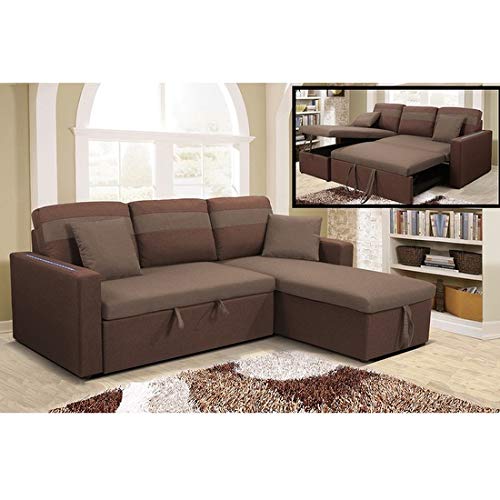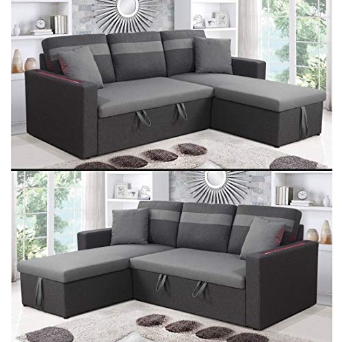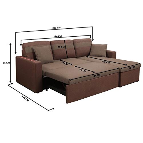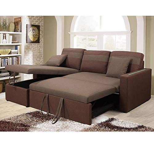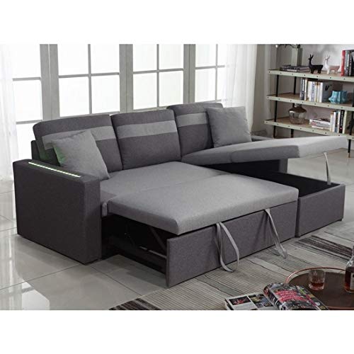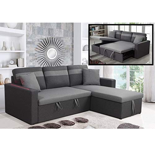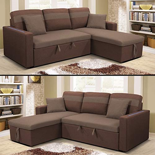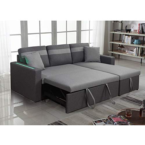 divano letto angolare con penisola a destra o a sinistra, luci led, letto 2 piazze