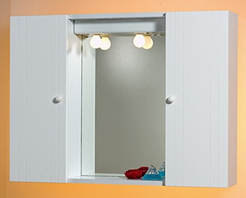 Bagno Italia Specchiera Specchio con Contenitore da 80x60x17 Bianco Due Ante con Maniglie l