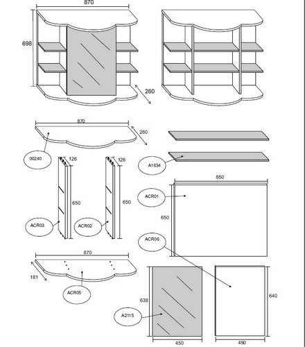 Bagno Italia Specchio specchiera per Bagno Contenitore da 88x66hx27 Laccato Bianco con mensole in Vetro 1 l