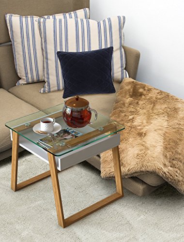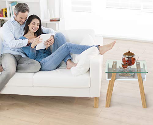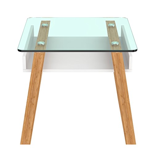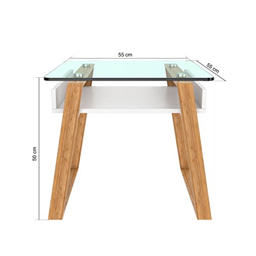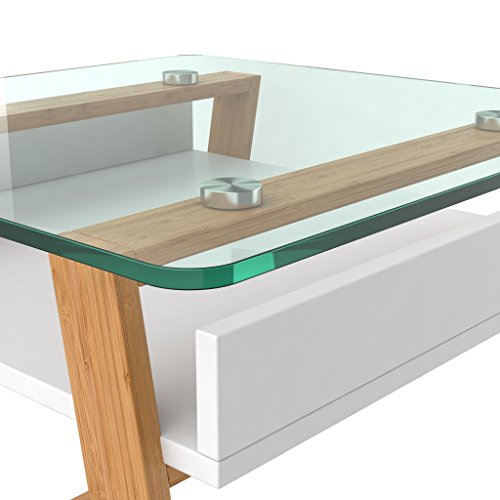 ✔ QUALITÀ Il tavolino da caffè Pablo è realizzato con una solida e resistente lastra di vetro temperato. Nella parte inferiore è invece presente uno scompartimento bianco laccato in MDF. Le gambe del tavolo sono infine realizzate in legno di bambù.