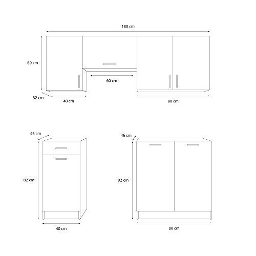 Larghezza totale della cucina: 180 cm
