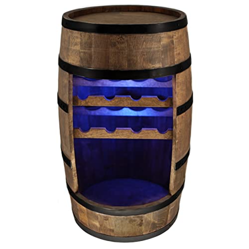 Elegante; lo scaffale in legno per bevande alcoliche ha un aspetto semplicemente squisito, il suo stile e la sua unicità diventano l’invidia di tutti. Alimentazione illuminazione 230/12 V. Su richiesta del cliente, possiamo installare un alimentatore a batteria (8x batterie AA 1,5V) al posto del cavo. Lo scaffale per bottiglie è sottile e dall’aspetto unico e impeccabile. Le bottiglie illuminate sembrano fantastiche nella botte di vino