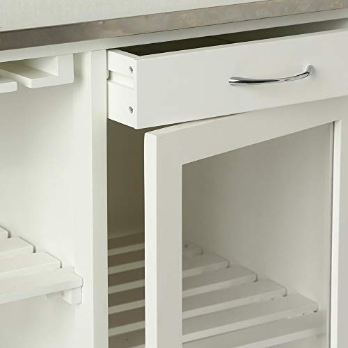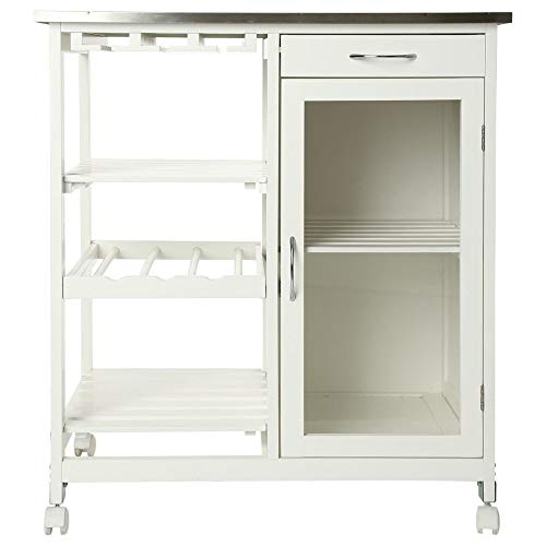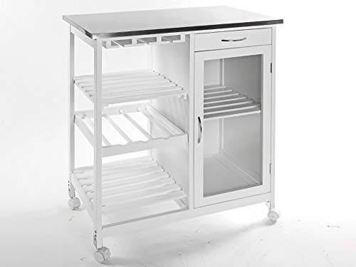 Carrello da cucina a isola – Linee lisce – Piano di lavoro in acciaio inox – Telaio in MDF bianco.