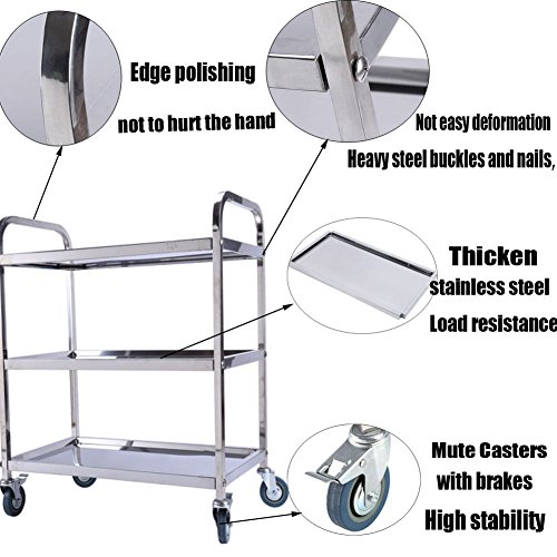 Resistente: il carrello supporta fino a 100 kg di peso per ripiano; il materiale acciaio inossidabile protegge il carrello contro l’ acqua, l’ ossidazione e la corrosione; molto adatto in una cucina o bagno