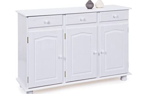 Dmora Buffet 3 Ante 3 cassetti in Pino massello Verniciato ad Acqua Bianco