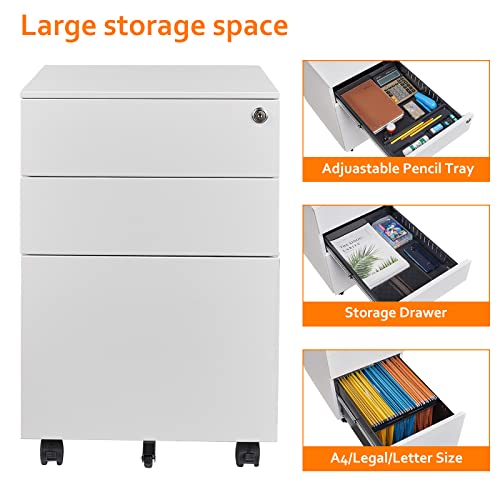 ⏰【3 cassetti per l’archiviazione】3 cassetti con vassoi portamatite rimovibili e barre di sospensione regolabili che possono contenere cartelle sospese in formato lettera, legale e A4. Due cassetti poco profondi sono la dimensione ideale per riporre cancelleria di vario tipo.