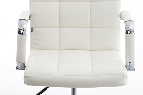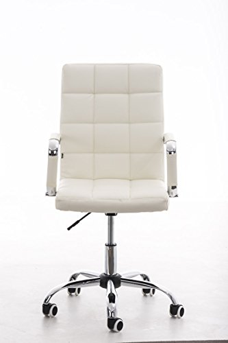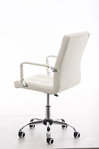 MATERIALI – sedia da studio girevole con generosa imbottitura e cuciture a motivo quadrato, il rivestimento in similpelle è resistente, elastico e facile da pulire. La seduta 100% poliuretano della sedia direzionale da pc poggia su un telaio in metallo cromato con base a croce completa di ruote antiattrito