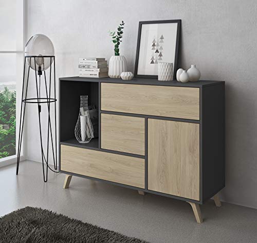 Moderna credenza Buffet con struttura in Grigio Antracite, con 1 anta e 3 cassetti in colore Puccini.