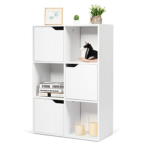 【Organizer con 6 cubi e ante】La libreria con 3 livelli è formata da 6 scompartimenti con ampio spazio per massimizzare l’uso della stanza. Con scompartimenti chiusi e aperti, è possibile organizzare vari articoli e mantenere la stanza pulita e ordinata.