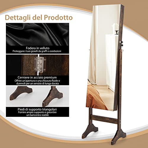 【Specchio Regolabile e Senza Cornice】Lo specchio di questo mobile portagioie è privo di cornice e offre una visione più ampia dalla testa ai piedi. Inoltre, l’armadietto è dotato di 4 angoli di inclinazione regolabili, che consentono di scegliere la posizione desiderata in base alle proprie esigenze.