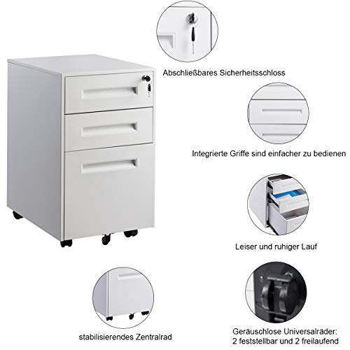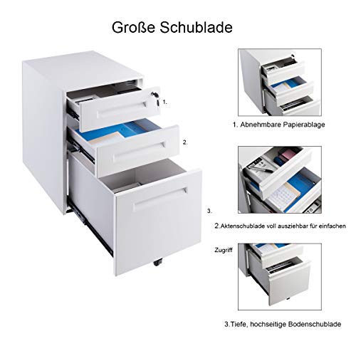 【Design pratico e moderno】 L’unità 3 cassetti abbastanza grande per ordinare i tuoi documenti, i utensili per ufficio. Nostra cassettiera non solo un mobiletto pratico ma anche una bella decorazione del tuo ufficio. Il suo design moderno è adatto qualsiasi arredamento del tuo ufficio.