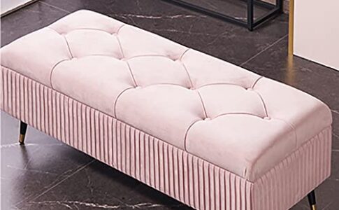 Velluto Stoccaggio Ottomanoo Panca,Lussuoso Panca Contenitore Fine Letto Imbottita Panca,Moderno Panca Camera da Letto Panchina Entryway Ottomano con Contenitore-Rosa 90x45x45cm(35x18x18inch)