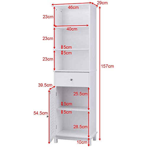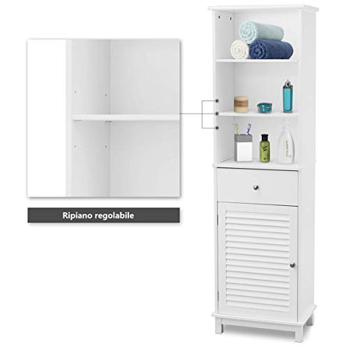 【Spazio di archiviazione sufficiente】I 5 scomparti con un cassetto nel mezzo, offrono molto spazio di archiviazione, rendendo il tuo bagno pulito ed in ordine. Tutto può essere trovato rapidamente.
