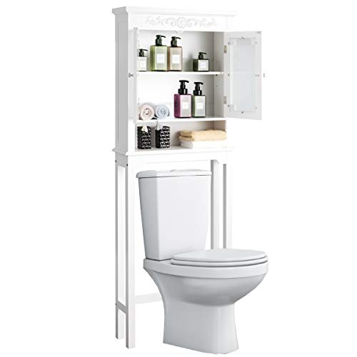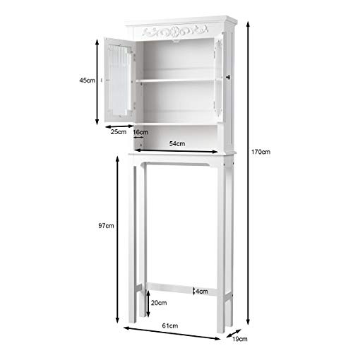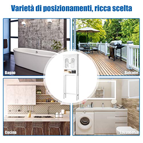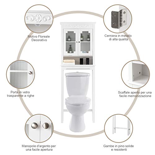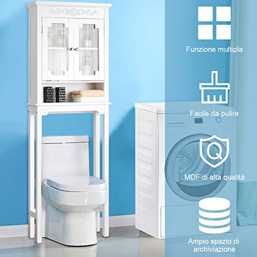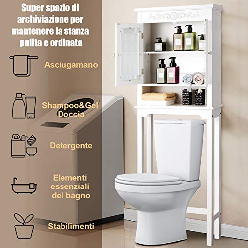 【Ampio spazio di archiviazione e praticità】 Questo armadietto per toilette presenta una mensola chiusa con doppia porta in vetro e una mensola aperta per contenere una varietà di articoli da bagno funzionali o decorativi. Interno la mensola dotato con 2 ripiani per riporre i tuoi oggetti personali.