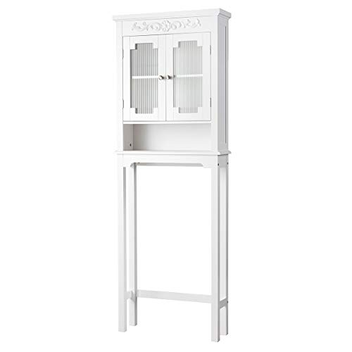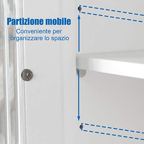 【Aspetto moderno ed elegante】 Composto da pannelli di vernice bianca e doppia porta realizzato in vetro e pannello. Questo tipo di design lo rendono elegante e piacevole alla vista. Inoltre, la vernice esterna rende il ripiano resistente all’umidità.