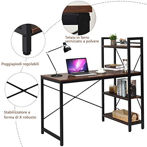【Scrivania spaziosa con 4 livelli】La scrivania misura 122 cm ed è molto spaziosa per riporre tutto il necessario per studiare e lavorare. Con 4 livelli, si possono riporre documenti, libri e molto altro per averli sempre a portata di mano.