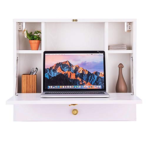 【Montata a muro e pieghevole】Il design pieghevole e montato a muro rende la scrivania perfetta per spazi piccoli e offre soluzioni salva spazio per riporre oggetti essenziali e mantenere pulita la casa o l’ufficio. In più, è facile da montare.