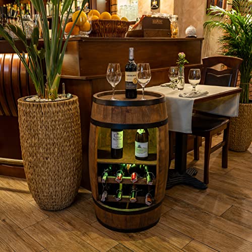 Elegante: scaffale in legno per bevande alcoliche sembra semplicemente squisito, il suo stile e unicità sarà l’invidia di tutti. Alimentatore di rete per illuminazione 230/12 V. Su richiesta del cliente possiamo installare un alimentatore di rete (8 batterie AA da 1,5 V). Basta scriverci dopo l’acquisto. Le bottiglie illuminate hanno un aspetto fantastico nella botte di vino