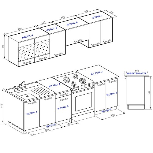 Cucina componibile compatta, da 7 pezzi.