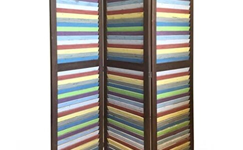 VERDELOOK Country, Paravento a 3 Ante in Legno, con Righe Colorate per arredo casa, Anta 44x168x3 cm