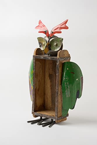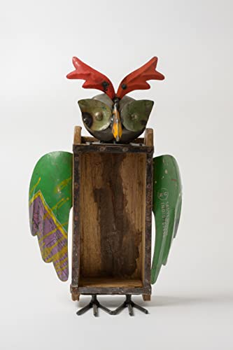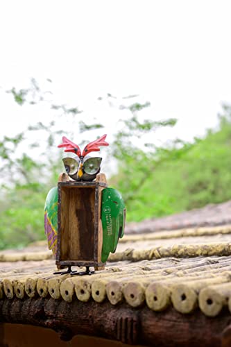 RECYCLED MATERIAL & IDEAL SIZE: Made from 100% recycled parts and scrap metal, this decorative Recycled Iron OWL WITH BRICK MOULD BOTTLE HOLDER Figurine 10.5×3.5×17 (LWH) inches