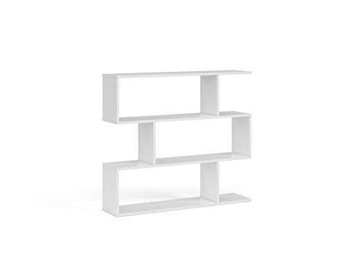 Libreria bassa (altezza 97 cm.), bifacciale, dal design asimmetrico, composta da 3 scaffali a vista + top
