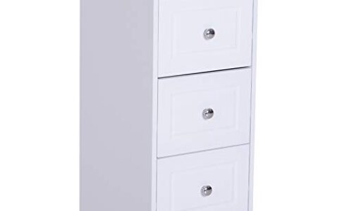 homcom Armadietto da Terra per Bagno in Legno con 3 Cassetti Bianco per Bagno Legno 3 Cassetti Bianco Bagno, la Camera da Letto o Salotto MDF Grado E1 29.8L x 29.8WP x 68.5A cm Bianco