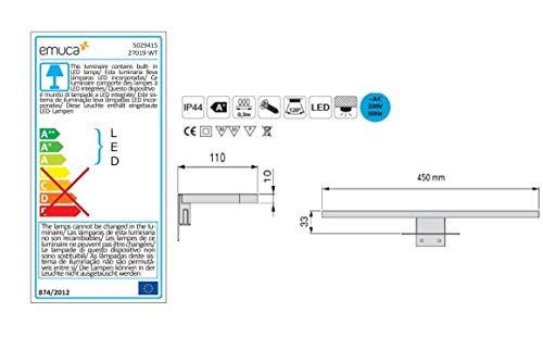 Completo di lampada da parete a LED (7 W, luce bianca fredda); lampada a LED con collegamento diretto alla corrente (230 V 50 Hz), IP44 per l’uso in bagno, struttura in acciaio cromato.