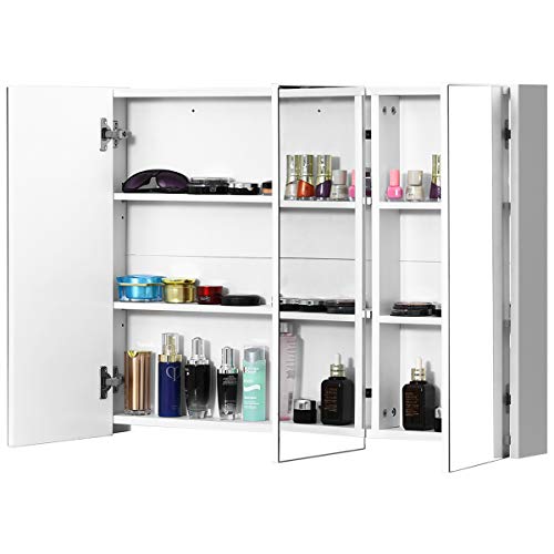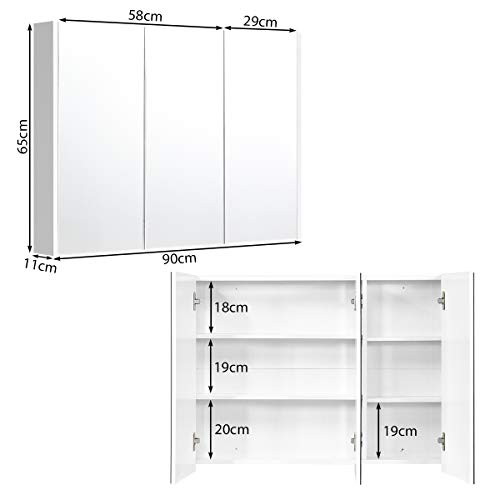 Ampio spazio di archiviazione – L’armadio a specchio ha 3 porte e tre piani interni per un ampio spazio di archiviazione. La mensola è regolabile e molto flessibile per soddisfare le diverse esigenze.