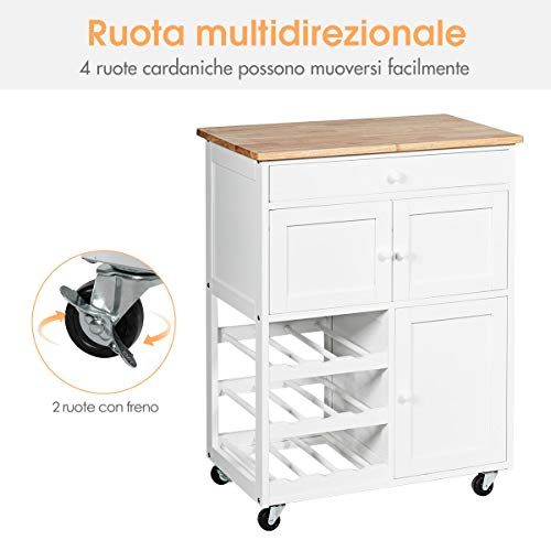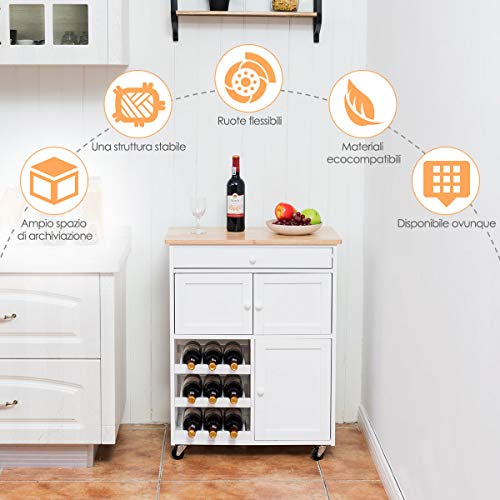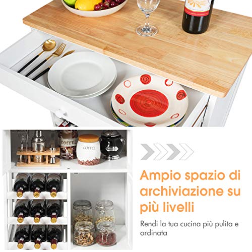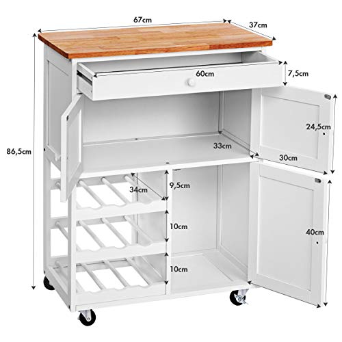Alta qualità – Il carrello della cucina è realizzato in legno ecologico, quindi la struttura è robusta e resistente, ciò garantisce una lunga durata e una maggiore stabilità.