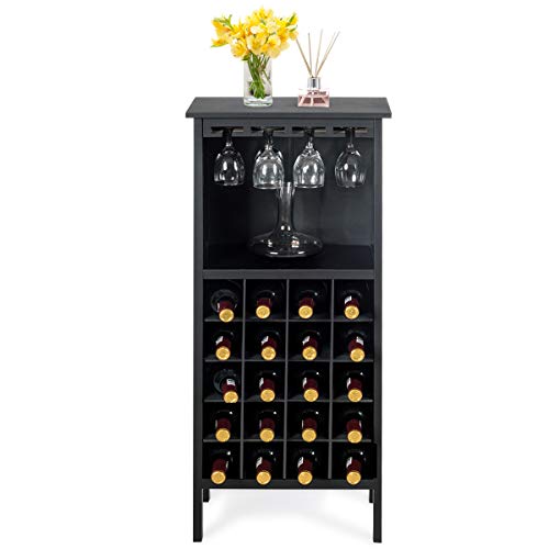 Ampio spazio di archiviazione – L’area inferiore del portabottiglie contiene 20 bottiglie di vino, l’armadietto superiore è dotato di 4 portabicchieri da vino e un ripostiglio aggiuntivo. Può contenere fino a 28 bottiglie di vino.