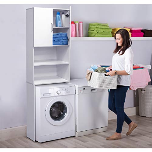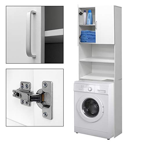 FACILE CURA E FACILE MONTAGGIO – Realizzato in truciolare rivestito in melaminico con maniglie in look metallico, il mobiletto bagno salvaspazio è particolarmente facile da pulire e può essere pulito in modo rapido e semplice. La coprilavatrice è facile da montare grazie alle dettagliate e ben illustrate istruzioni di montaggio. Per motivi di sicurezza si consiglia di montare l’armadio bagno a parete.