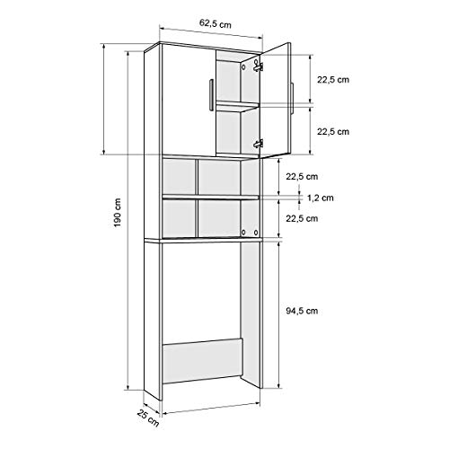 DATI TECNICI – Materiale: truciolare nobilitato, Colore: Bianco, Dimensioni (LxlxH): ca. 62,5 x 25 x 190 cm, larghezza della rientranza: ca. 60,8 cm, altezza della nicchia: ca. 94,5 cm, profondità: circa 25 cm, spessore impiallacciatura: circa 12 mm